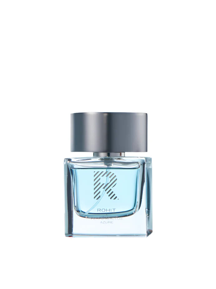 Rohit Azure, una fragancia unisex creada para evocar frescura y profundidad. Inicia con notas cítricas chispeantes y se transforma suavemente en un cálido y persistente abrazo ambarado.